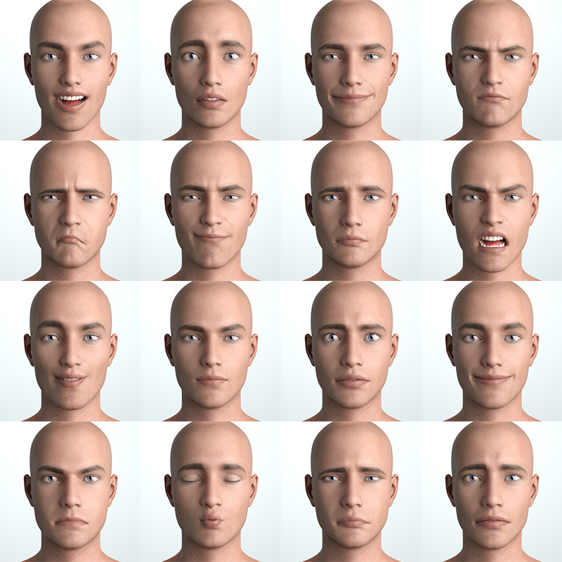 40 unique expressions for Genesis 8 Male models in Daz Studio.